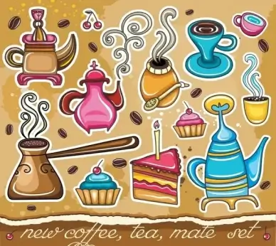 food drink background classical cake cup pot coffee icons