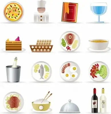 restaurant icons shiny modern colored symbols sketch