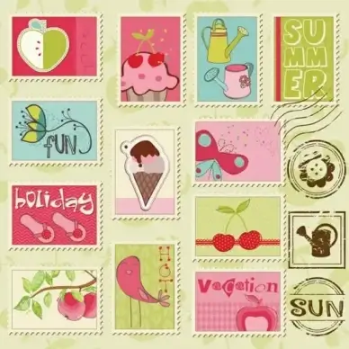 season stamps templates collection colorful flat classical handdrawn