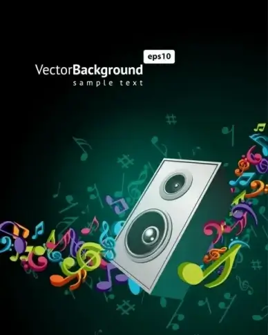 musical background colorful dynamic notes speaker decor