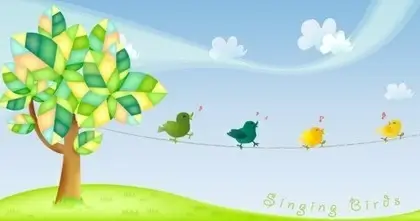 birds singing tree background with colored style illustration