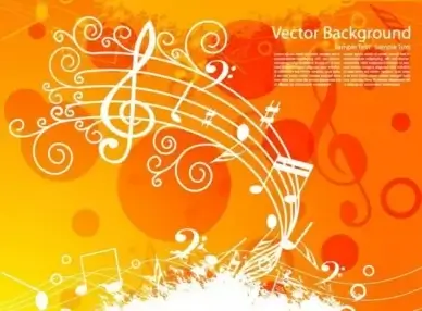 music background notes icons white orange decor
