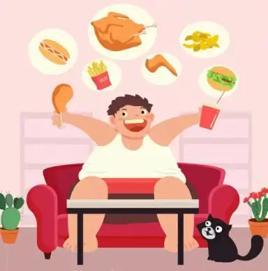 diet background fat man fast food icons