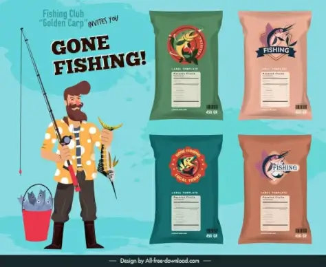 fish snack advertising banner fisher package sketch