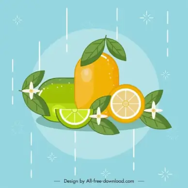 lemon fruits background slices icons yellow design