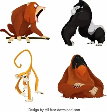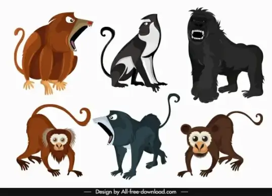 primate species icons orangutang gorilla cynocephalus monkey sketch