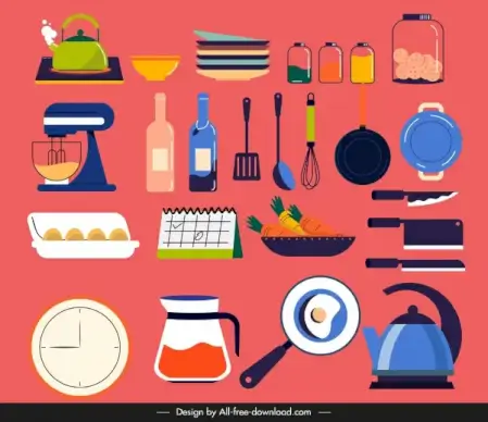 kitchenware design elements multicolored object icons