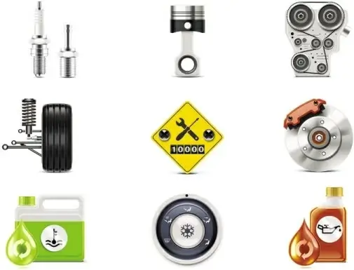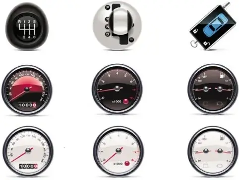 car parts icons speedometer gear shifts shiny modern