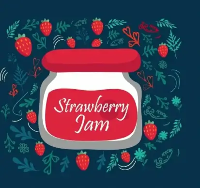box and bottle jar sticker package design for strawberry jam template elegant modern design