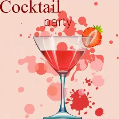 cocktail party banner wineglass strawberry grunge decor