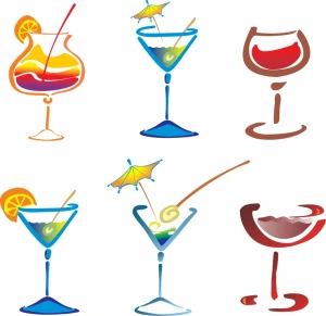 cocktail glass icons colorful flat handdrawn sketch