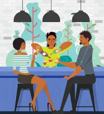 lifestyle drawing bar guests bartender icons cartoon characters