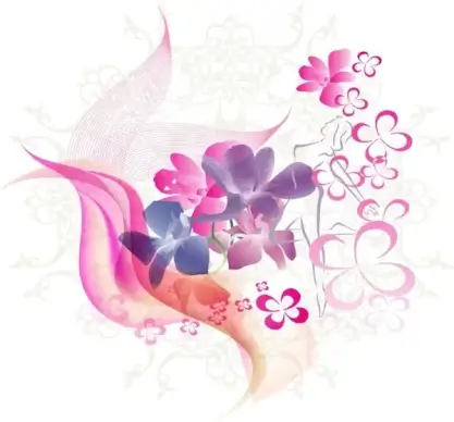 floral background sketch pink flowers and curves design