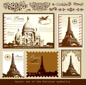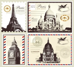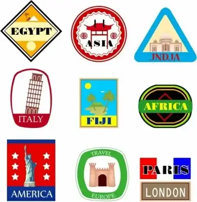 landmark stamps collection flat classic silhouette nation symbols