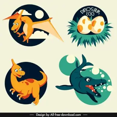 dinaosaur icons pteranodon mosasaurus parasaurolophus sketch cartoon design