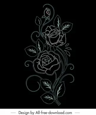 baroque vintage floral ornament design elements handdrawn stylized roses outline