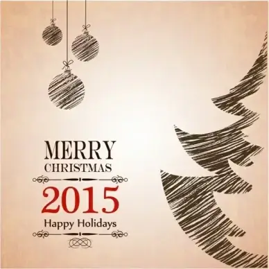 christmas card design elements elegant flat calligraphic greeting fir tree baubles decor