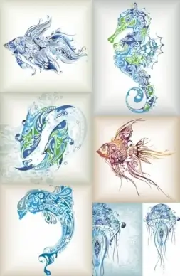 delicate marine life pattern vector