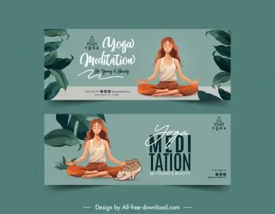 international yoga day advertising poster template flat classical cartoon sitting woman floral sketch