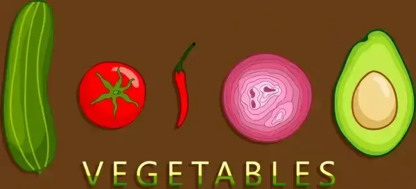 agricultural vegetables icons pea cucumber chili tomato sketch