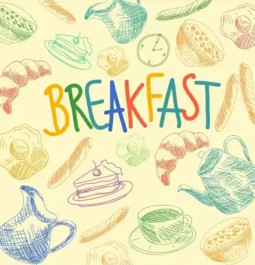 breakfast background handdrawn decor various multicolored icons