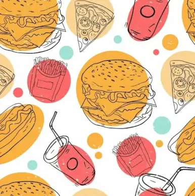fast food background colorful classical sketch