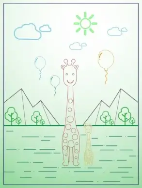 world wildlife day facebook cover template leaves giraffe jungle scene cartoon sketch