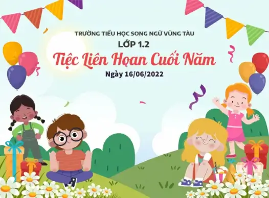 truong tieu hoc nguyen viet xuan lop 42 year end banner template funny dynamic cartoon design