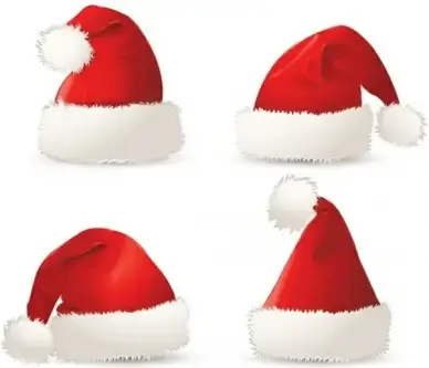 christmas hat icons realistic design red white decor