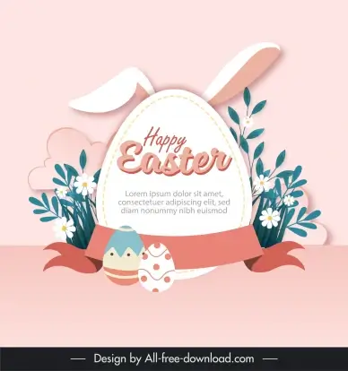easter day poster template cute cartoon rabbit eggs flowers decor